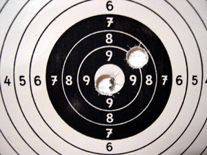 24. April 2004 [Treffling] - Beim heutigen Aufschießen der Trefflinger Jäger (25 Schützen, je drei Schüsse auf die kleine Scheibe) bin ich gleichauf mit Ernst in Führung gegangen. Im Stechen (je zwei Schüsse) konnte ich den Wettkampf mit einem Zehner und einem Neuner für mich entscheiden.